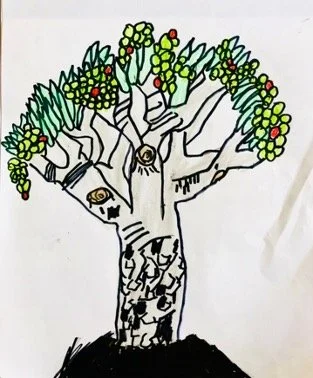 A yearlong exploration of local plant life led to the discovery of dracaena draco or the dragon tree’s origin story. Rooted in Greek Mythology, the dragon tree came into existence as the result of Hercules’ 11th Labor. The gist of the story is that Hercules defeated the hundred-headed dragon who was protecting a tree that bore priceless golden apples. Wherever the dragon’s blood spilled on the land, dragon trees began to grow. To this day, the trees still “bleed” dragon blood, oozing red sap when felled. This magical element was the irresistible hook that inspired me to rewrite this origin story from our homeschool’s quirky narrative perspective.